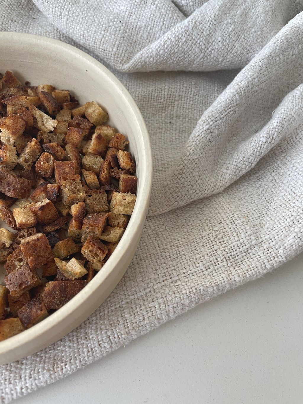 Die Croûtons passen hervorragend in Suppen und auf Salate. Sie sind aber auch super um sie einfach so, zwischendurch, zu snacken.